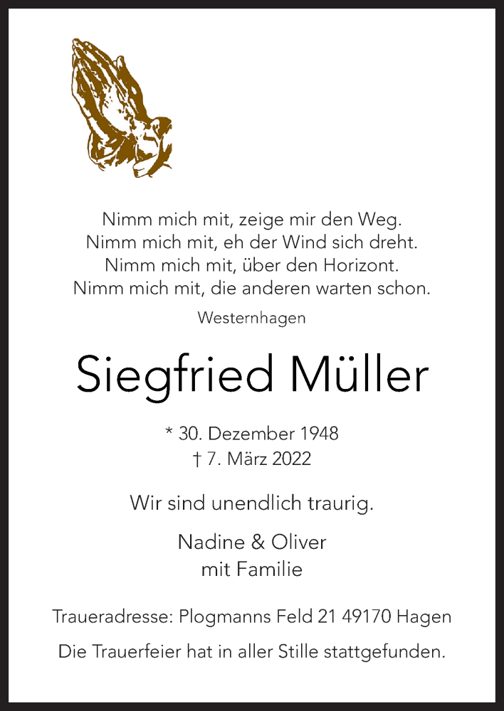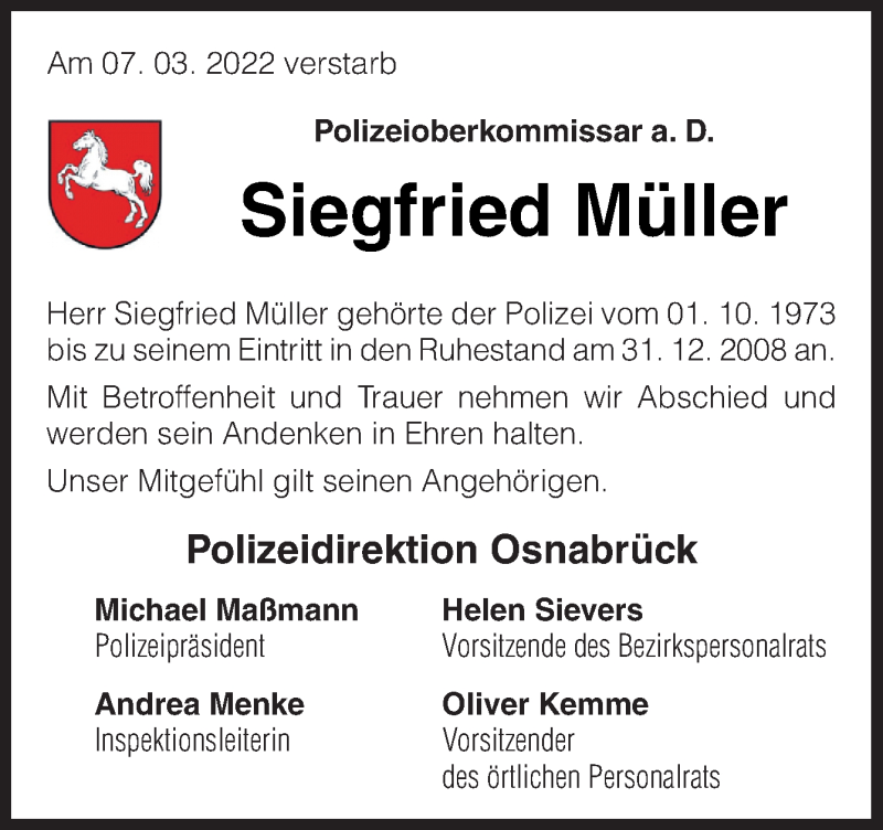 Hier finden Sie alle Traueranzeigen aus der Zeitung, die bisher für Siegfried Müller erschienen sind. Weitere Traueranzeigen, die in der Zeitung erscheinen, werden hier ebenfalls aufgelistet