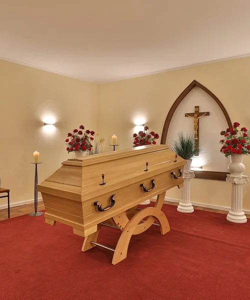 • Eigene Trauerfeierhalle: Wir bieten Ihnen einen geschützten, privaten Rahmen für Abschiedszeremonien direkt in unseren Räumlichkeiten.