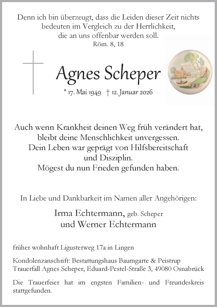Hier finden Sie alle Traueranzeigen aus der Zeitung, die bisher für Agnes Scheper erschienen sind. Weitere Traueranzeigen, die in der Zeitung erscheinen, werden hier ebenfalls aufgelistet