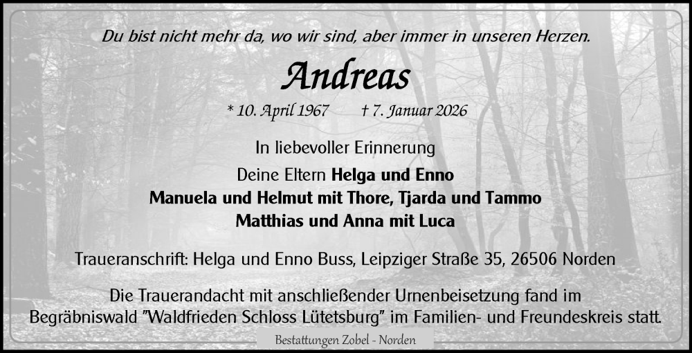 Hier finden Sie alle Traueranzeigen aus der Zeitung, die bisher für Andreas erschienen sind. Weitere Traueranzeigen, die in der Zeitung erscheinen, werden hier ebenfalls aufgelistet