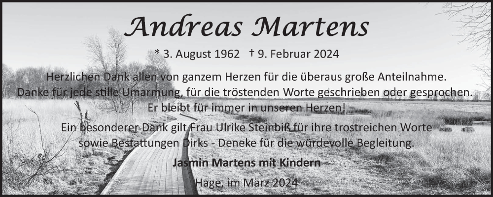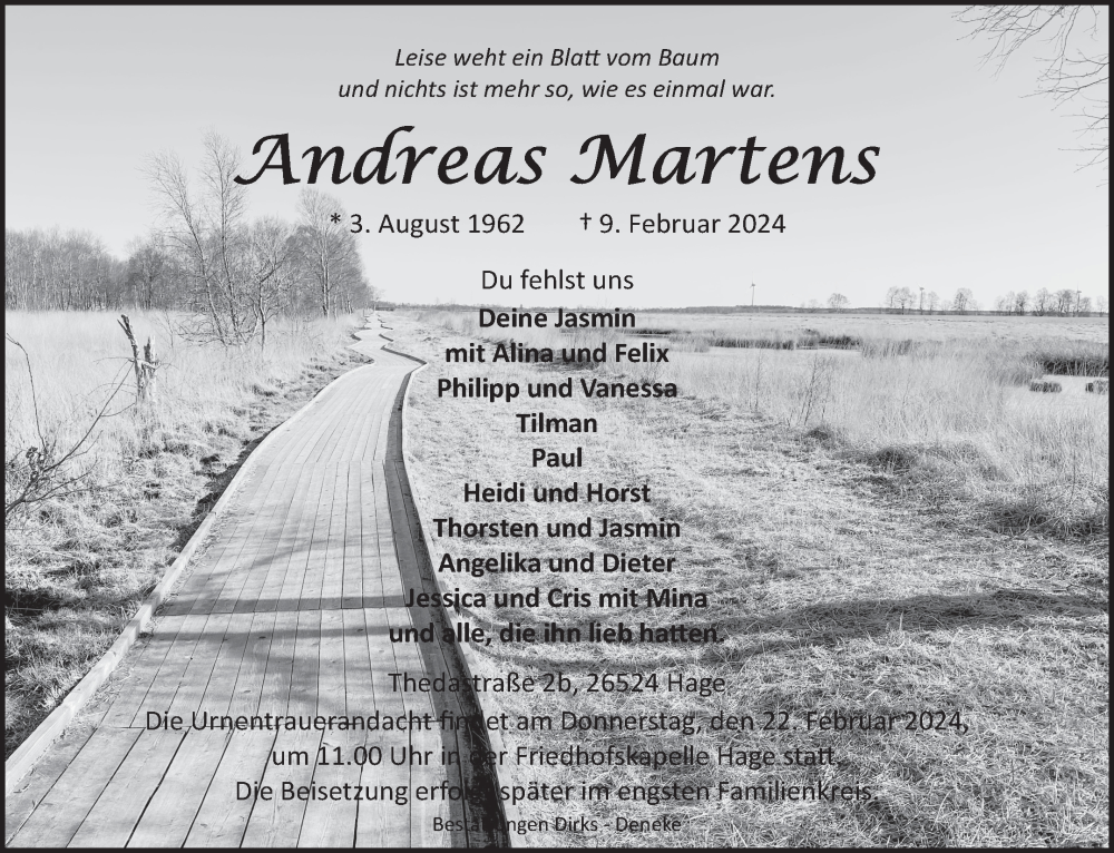 Hier finden Sie alle Traueranzeigen aus der Zeitung, die bisher für Andreas Martens erschienen sind. Weitere Traueranzeigen, die in der Zeitung erscheinen, werden hier ebenfalls aufgelistet
