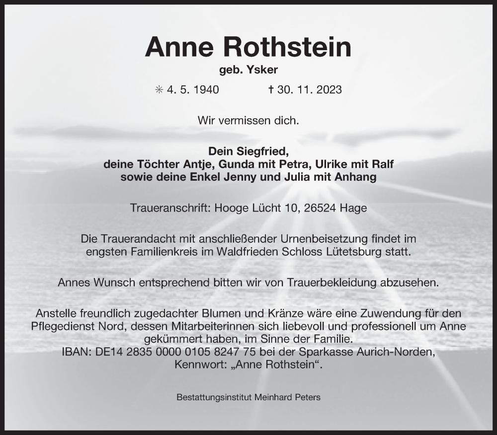 Hier finden Sie alle Traueranzeigen aus der Zeitung, die bisher für Anne Rothstein erschienen sind. Weitere Traueranzeigen, die in der Zeitung erscheinen, werden hier ebenfalls aufgelistet