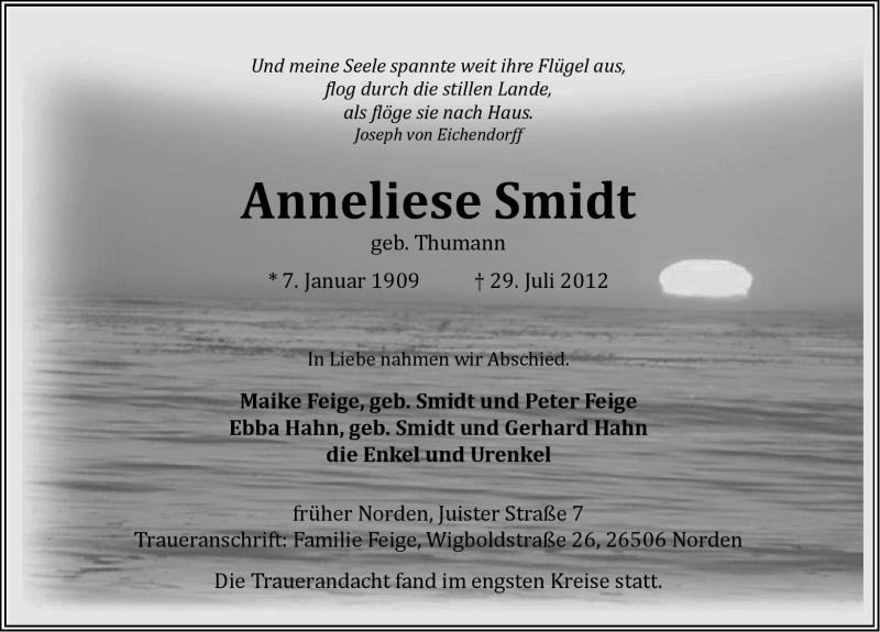 Hier finden Sie alle Traueranzeigen aus der Zeitung, die bisher für Anneliese Smidt erschienen sind. Weitere Traueranzeigen, die in der Zeitung erscheinen, werden hier ebenfalls aufgelistet