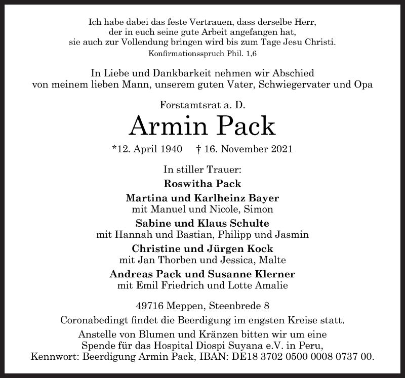 Hier finden Sie alle Traueranzeigen aus der Zeitung, die bisher für Armin Pack erschienen sind. Weitere Traueranzeigen, die in der Zeitung erscheinen, werden hier ebenfalls aufgelistet