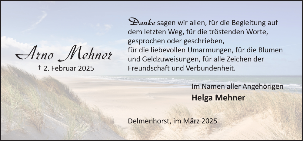 Hier finden Sie alle Traueranzeigen aus der Zeitung, die bisher für Arno Mehner erschienen sind. Weitere Traueranzeigen, die in der Zeitung erscheinen, werden hier ebenfalls aufgelistet