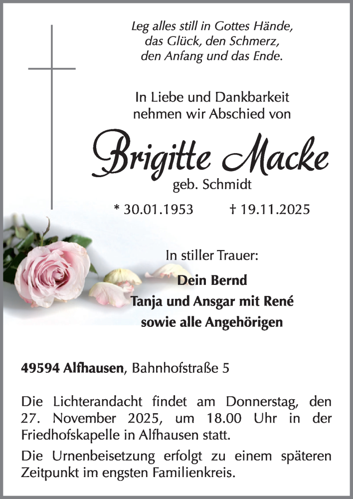 Hier finden Sie alle Traueranzeigen aus der Zeitung, die bisher für Brigitte Macke erschienen sind. Weitere Traueranzeigen, die in der Zeitung erscheinen, werden hier ebenfalls aufgelistet