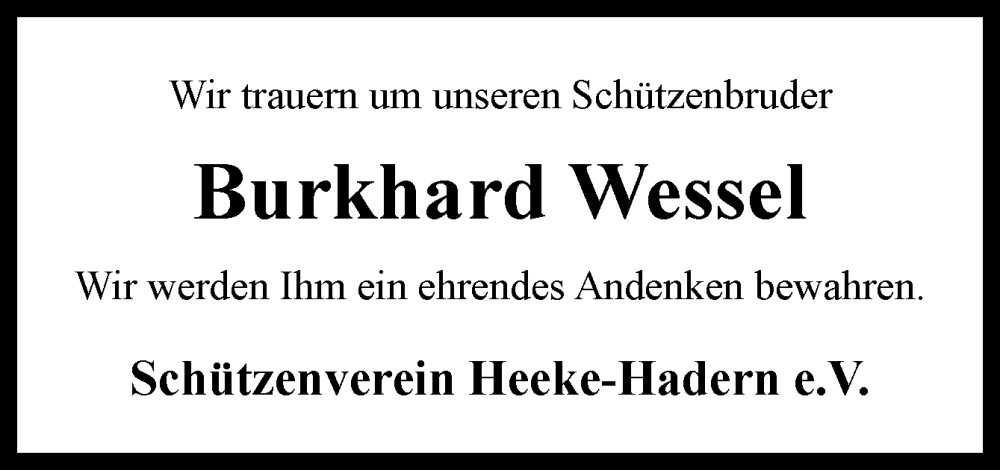 Hier finden Sie alle Traueranzeigen aus der Zeitung, die bisher für Burkhard Wessel erschienen sind. Weitere Traueranzeigen, die in der Zeitung erscheinen, werden hier ebenfalls aufgelistet