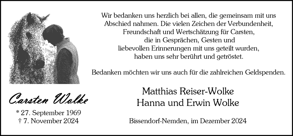 Hier finden Sie alle Traueranzeigen aus der Zeitung, die bisher für Carsten Wolke erschienen sind. Weitere Traueranzeigen, die in der Zeitung erscheinen, werden hier ebenfalls aufgelistet