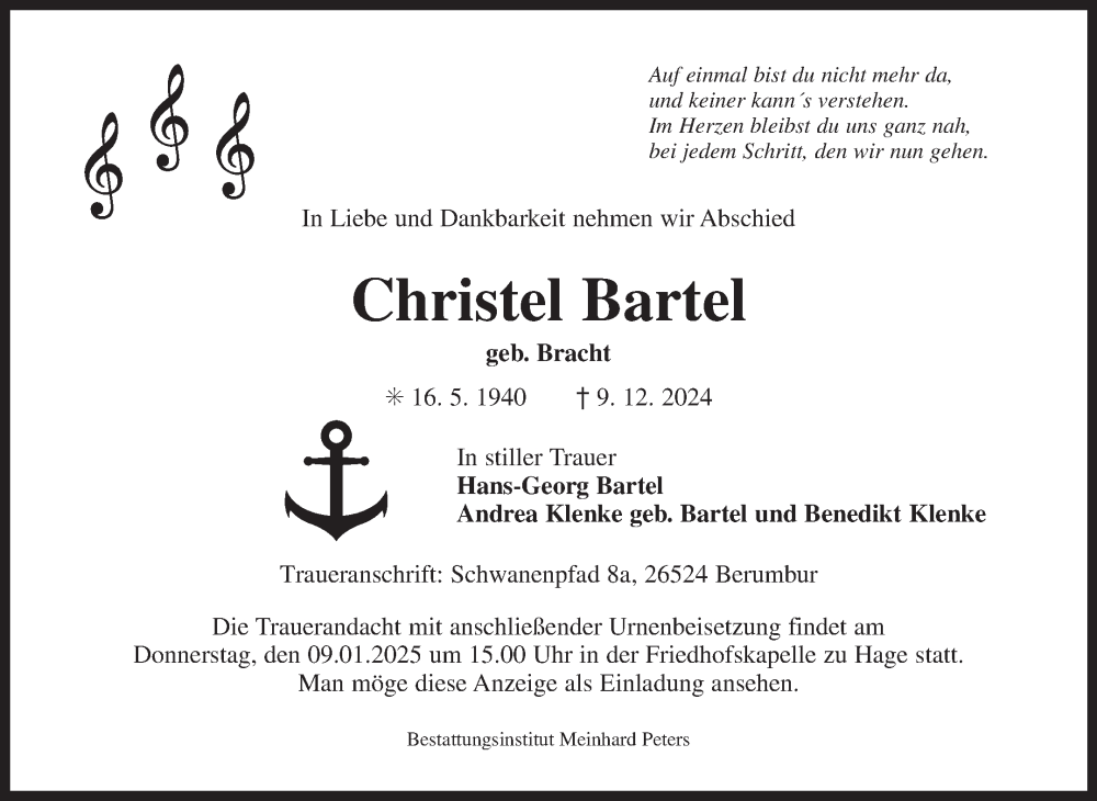Hier finden Sie alle Traueranzeigen aus der Zeitung, die bisher für Christel Bartel erschienen sind. Weitere Traueranzeigen, die in der Zeitung erscheinen, werden hier ebenfalls aufgelistet