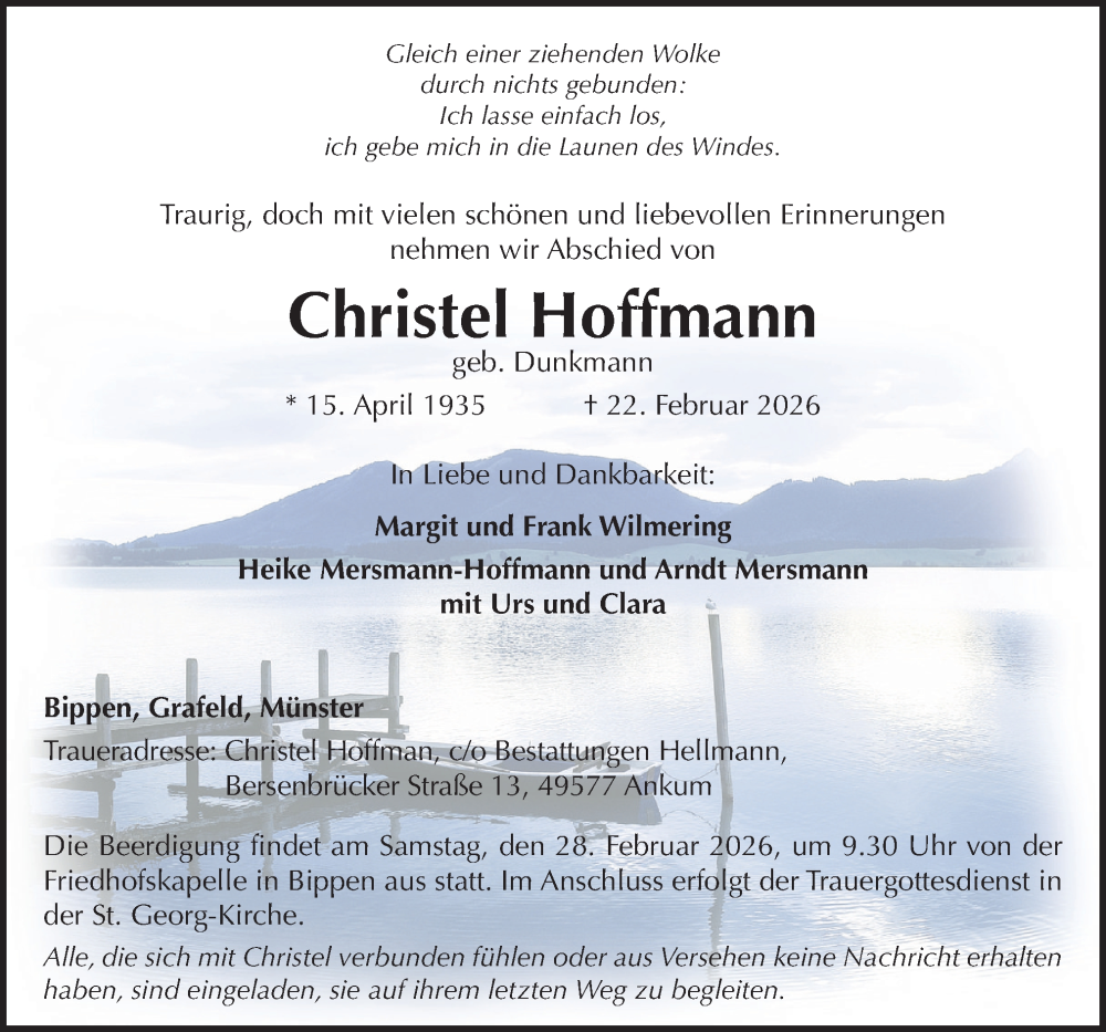 Hier finden Sie alle Traueranzeigen aus der Zeitung, die bisher für Christel Hoffmann erschienen sind. Weitere Traueranzeigen, die in der Zeitung erscheinen, werden hier ebenfalls aufgelistet