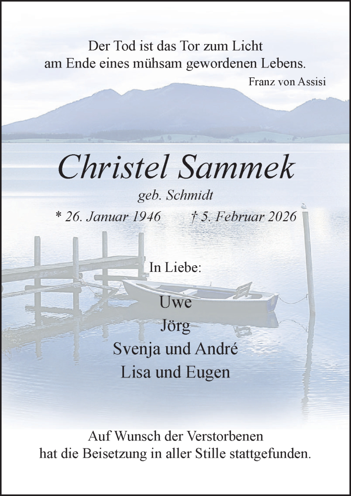 Hier finden Sie alle Traueranzeigen aus der Zeitung, die bisher für Christel Sammek erschienen sind. Weitere Traueranzeigen, die in der Zeitung erscheinen, werden hier ebenfalls aufgelistet