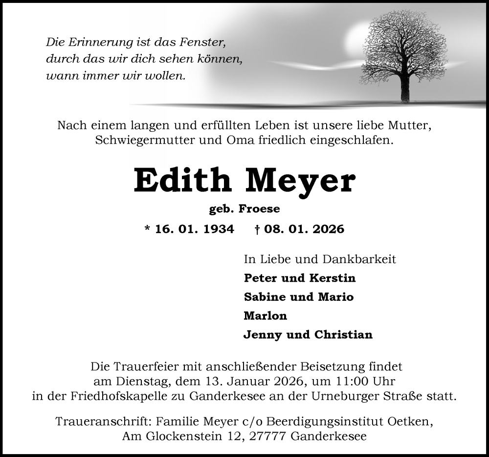 Hier finden Sie alle Traueranzeigen aus der Zeitung, die bisher für Edith Meyer erschienen sind. Weitere Traueranzeigen, die in der Zeitung erscheinen, werden hier ebenfalls aufgelistet