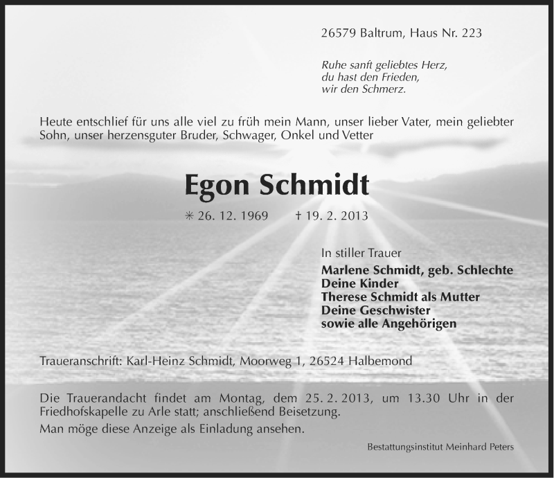 Hier finden Sie alle Traueranzeigen aus der Zeitung, die bisher für Egon Schmidt erschienen sind. Weitere Traueranzeigen, die in der Zeitung erscheinen, werden hier ebenfalls aufgelistet
