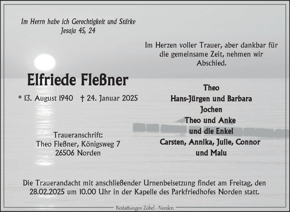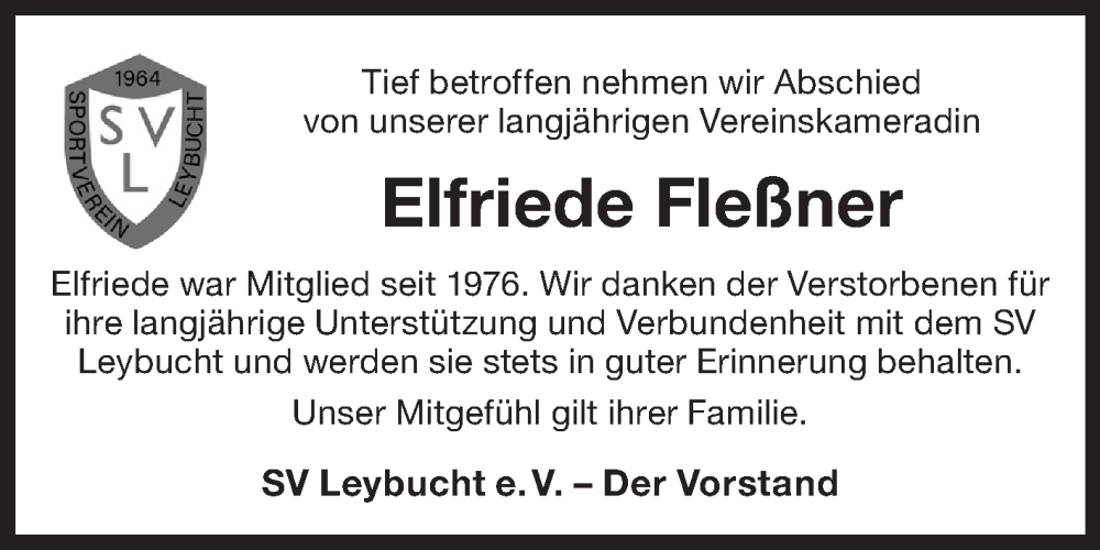 Hier finden Sie alle Traueranzeigen aus der Zeitung, die bisher für Elfriede Fleßner erschienen sind. Weitere Traueranzeigen, die in der Zeitung erscheinen, werden hier ebenfalls aufgelistet