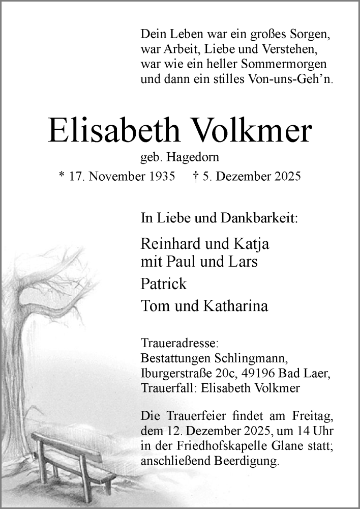 Hier finden Sie alle Traueranzeigen aus der Zeitung, die bisher für Elisabeth Volkmer erschienen sind. Weitere Traueranzeigen, die in der Zeitung erscheinen, werden hier ebenfalls aufgelistet