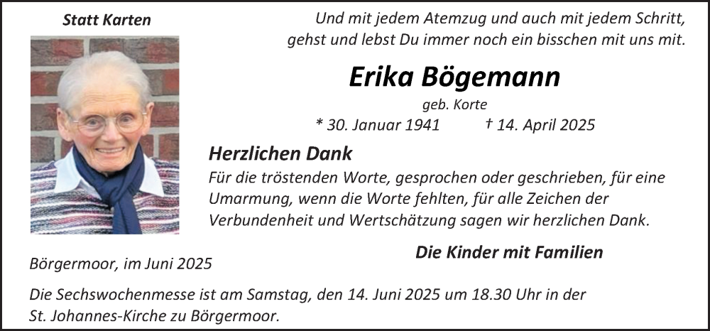 Hier finden Sie alle Traueranzeigen aus der Zeitung, die bisher für Erika Bögemann erschienen sind. Weitere Traueranzeigen, die in der Zeitung erscheinen, werden hier ebenfalls aufgelistet