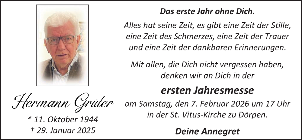 Hier finden Sie alle Traueranzeigen aus der Zeitung, die bisher für Fermann Grüter erschienen sind. Weitere Traueranzeigen, die in der Zeitung erscheinen, werden hier ebenfalls aufgelistet