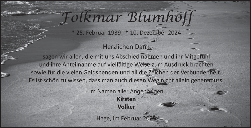 Hier finden Sie alle Traueranzeigen aus der Zeitung, die bisher für Folkmar Blumhoff erschienen sind. Weitere Traueranzeigen, die in der Zeitung erscheinen, werden hier ebenfalls aufgelistet