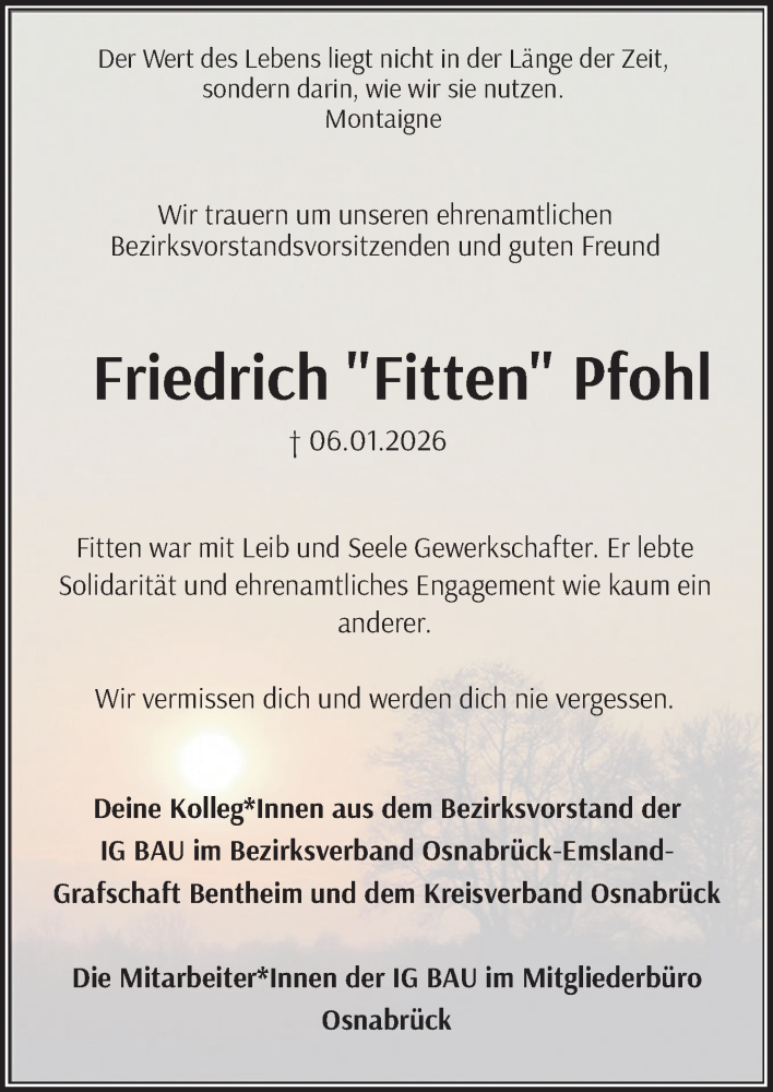 Hier finden Sie alle Traueranzeigen aus der Zeitung, die bisher für Friedrich Pfohl erschienen sind. Weitere Traueranzeigen, die in der Zeitung erscheinen, werden hier ebenfalls aufgelistet