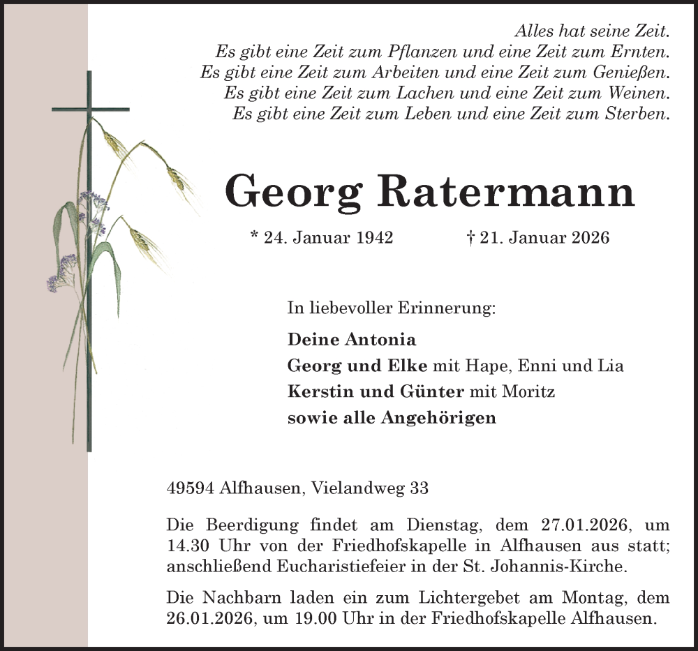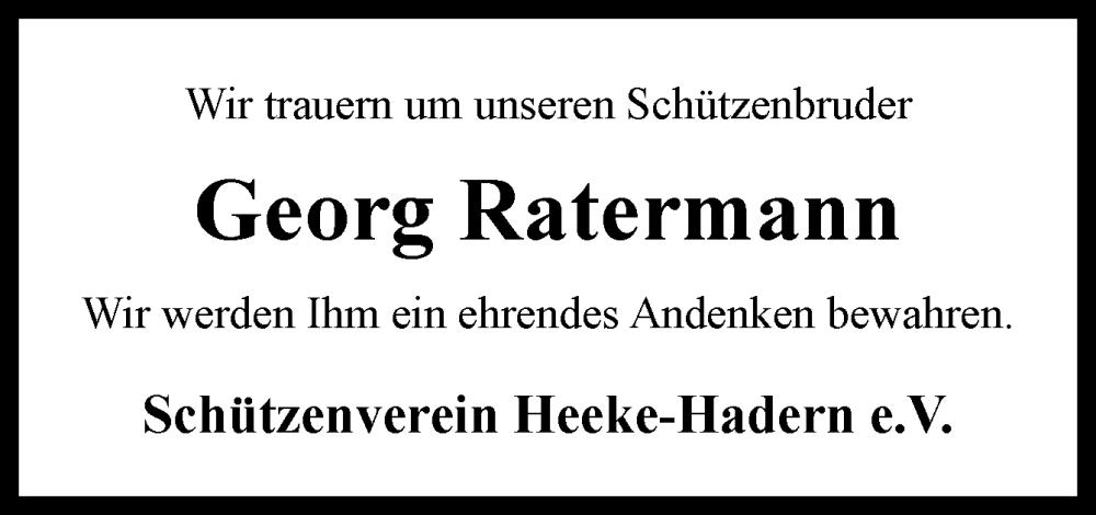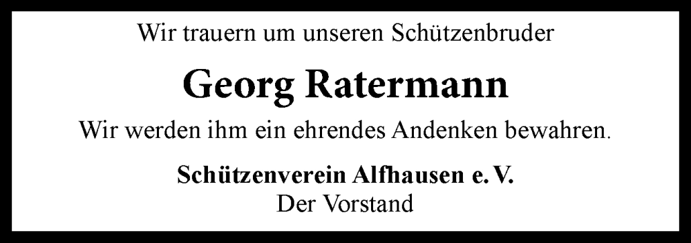 Hier finden Sie alle Traueranzeigen aus der Zeitung, die bisher für Georg Ratermann erschienen sind. Weitere Traueranzeigen, die in der Zeitung erscheinen, werden hier ebenfalls aufgelistet