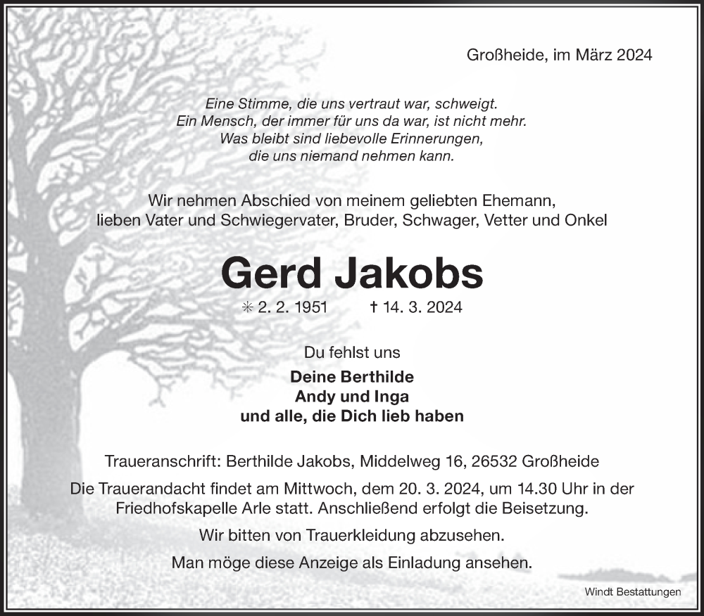 Hier finden Sie alle Traueranzeigen aus der Zeitung, die bisher für Gerd Jakobs erschienen sind. Weitere Traueranzeigen, die in der Zeitung erscheinen, werden hier ebenfalls aufgelistet
