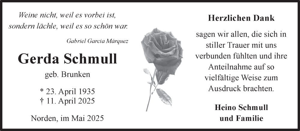 Hier finden Sie alle Traueranzeigen aus der Zeitung, die bisher für Gerda Schmull erschienen sind. Weitere Traueranzeigen, die in der Zeitung erscheinen, werden hier ebenfalls aufgelistet