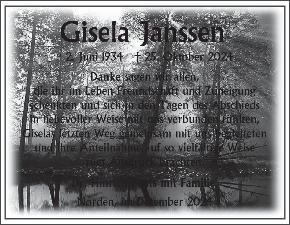Hier finden Sie alle Traueranzeigen aus der Zeitung, die bisher für Gisela Janssen erschienen sind. Weitere Traueranzeigen, die in der Zeitung erscheinen, werden hier ebenfalls aufgelistet