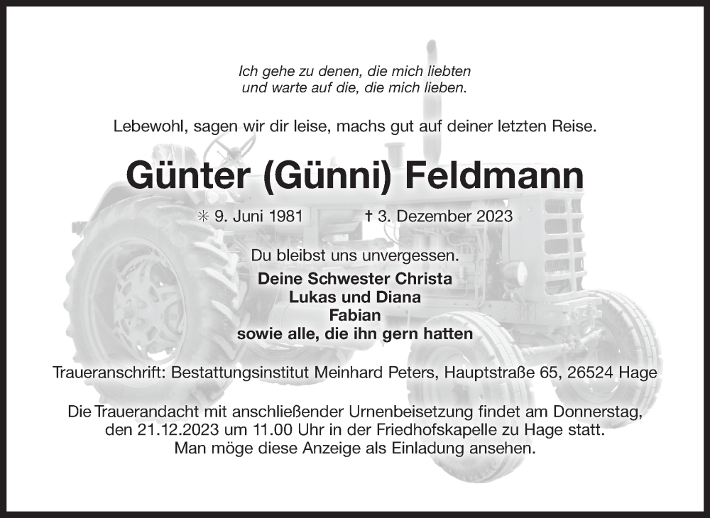 Hier finden Sie alle Traueranzeigen aus der Zeitung, die bisher für Günter Feldmann erschienen sind. Weitere Traueranzeigen, die in der Zeitung erscheinen, werden hier ebenfalls aufgelistet