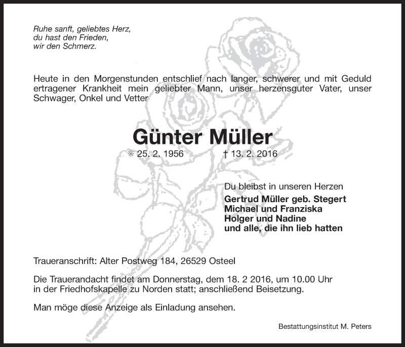 Hier finden Sie alle Traueranzeigen aus der Zeitung, die bisher für Günter Müller erschienen sind. Weitere Traueranzeigen, die in der Zeitung erscheinen, werden hier ebenfalls aufgelistet