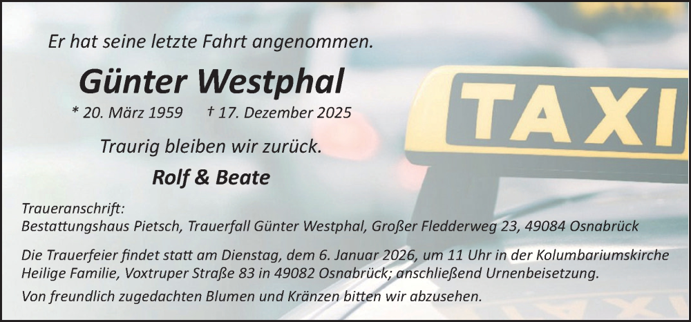 Hier finden Sie alle Traueranzeigen aus der Zeitung, die bisher für Günter Westphal erschienen sind. Weitere Traueranzeigen, die in der Zeitung erscheinen, werden hier ebenfalls aufgelistet