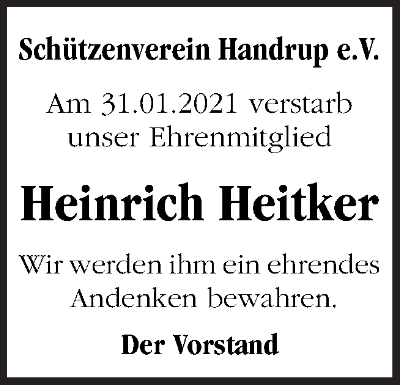 Hier finden Sie alle Traueranzeigen aus der Zeitung, die bisher für Heinrich Heitker erschienen sind. Weitere Traueranzeigen, die in der Zeitung erscheinen, werden hier ebenfalls aufgelistet