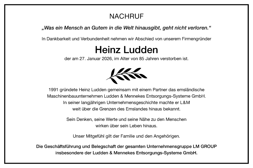 Hier finden Sie alle Traueranzeigen aus der Zeitung, die bisher für Heinz Ludden erschienen sind. Weitere Traueranzeigen, die in der Zeitung erscheinen, werden hier ebenfalls aufgelistet