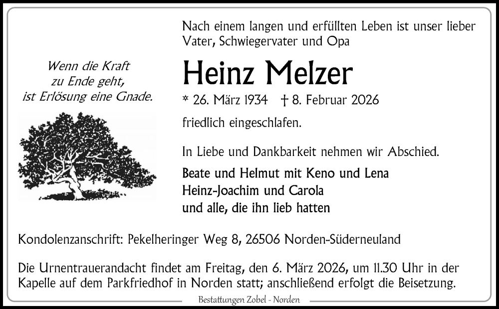 Hier finden Sie alle Traueranzeigen aus der Zeitung, die bisher für Heinz Melzer erschienen sind. Weitere Traueranzeigen, die in der Zeitung erscheinen, werden hier ebenfalls aufgelistet