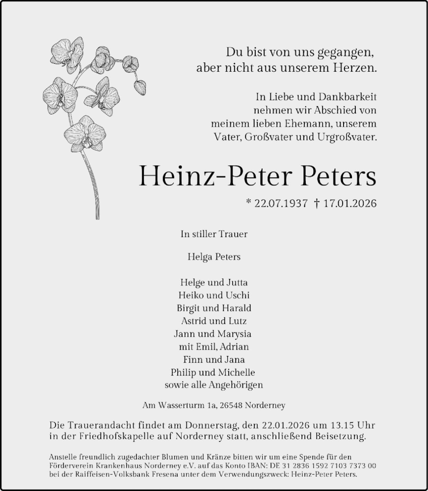 Hier finden Sie alle Traueranzeigen aus der Zeitung, die bisher für Heinz-Peter Peters erschienen sind. Weitere Traueranzeigen, die in der Zeitung erscheinen, werden hier ebenfalls aufgelistet