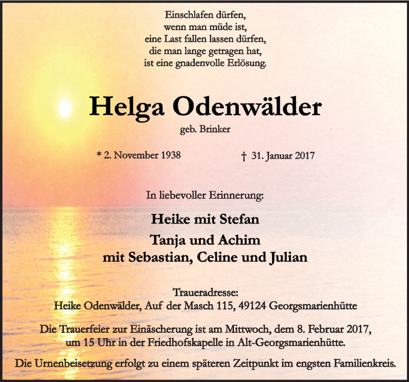 Hier finden Sie alle Traueranzeigen aus der Zeitung, die bisher für Helga Odenwälder erschienen sind. Weitere Traueranzeigen, die in der Zeitung erscheinen, werden hier ebenfalls aufgelistet