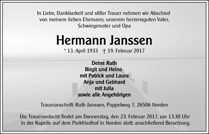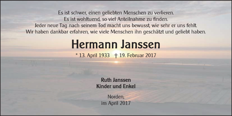 Hier finden Sie alle Traueranzeigen aus der Zeitung, die bisher für Hermann Janssen erschienen sind. Weitere Traueranzeigen, die in der Zeitung erscheinen, werden hier ebenfalls aufgelistet