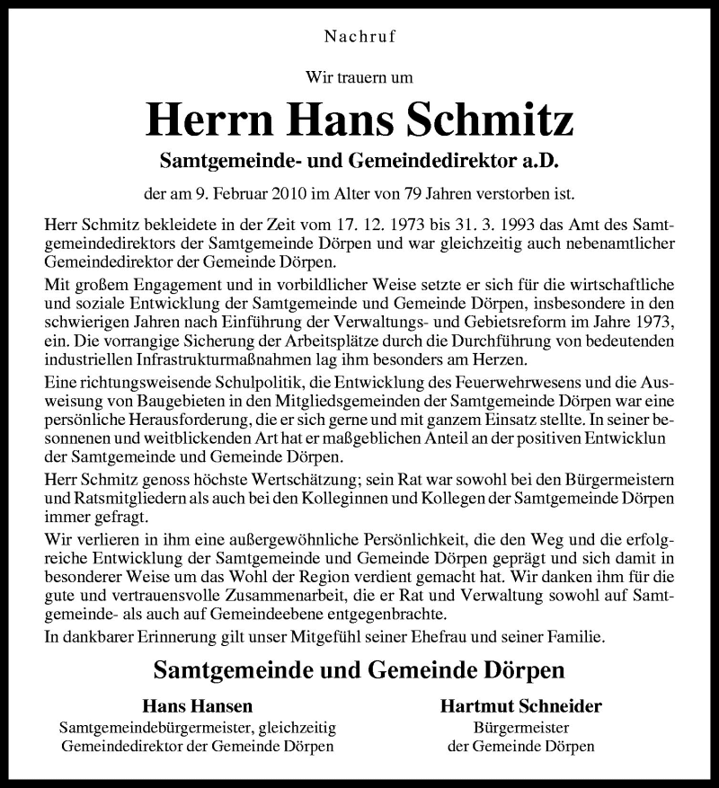 Hier finden Sie alle Traueranzeigen aus der Zeitung, die bisher für Hermann Schmitz erschienen sind. Weitere Traueranzeigen, die in der Zeitung erscheinen, werden hier ebenfalls aufgelistet