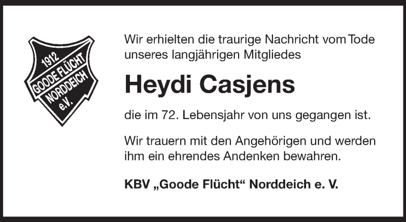 Hier finden Sie alle Traueranzeigen aus der Zeitung, die bisher für Heydi Casjens erschienen sind. Weitere Traueranzeigen, die in der Zeitung erscheinen, werden hier ebenfalls aufgelistet