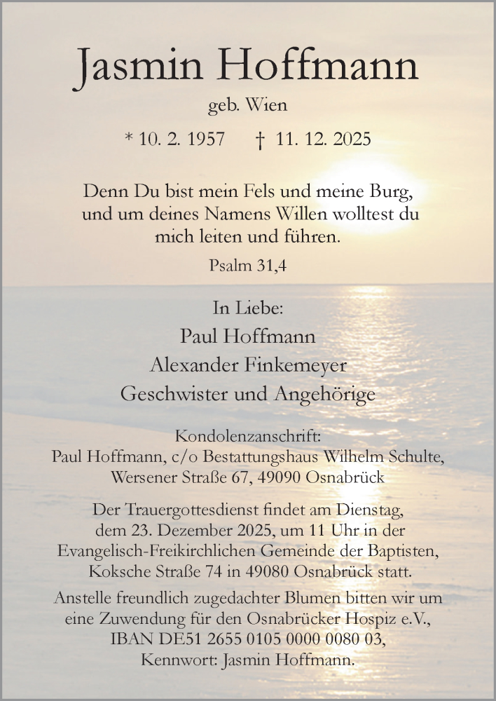 Hier finden Sie alle Traueranzeigen aus der Zeitung, die bisher für Jasmin Hoffmann erschienen sind. Weitere Traueranzeigen, die in der Zeitung erscheinen, werden hier ebenfalls aufgelistet
