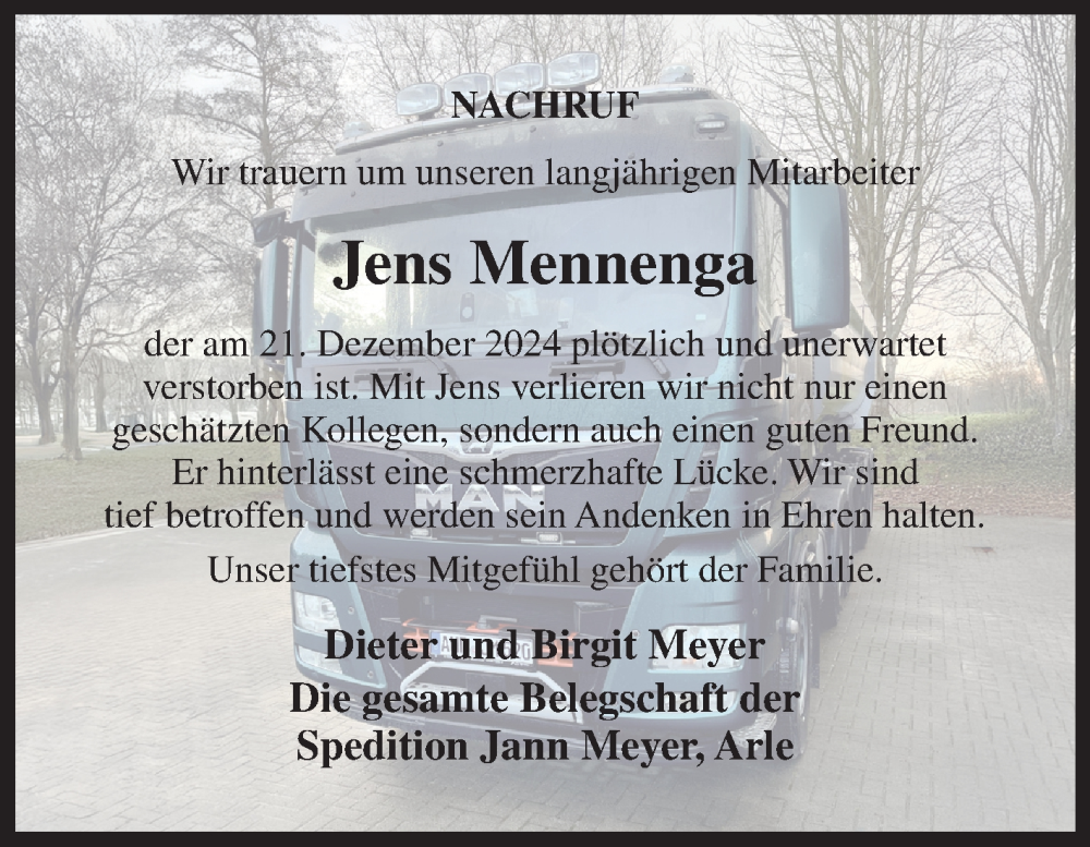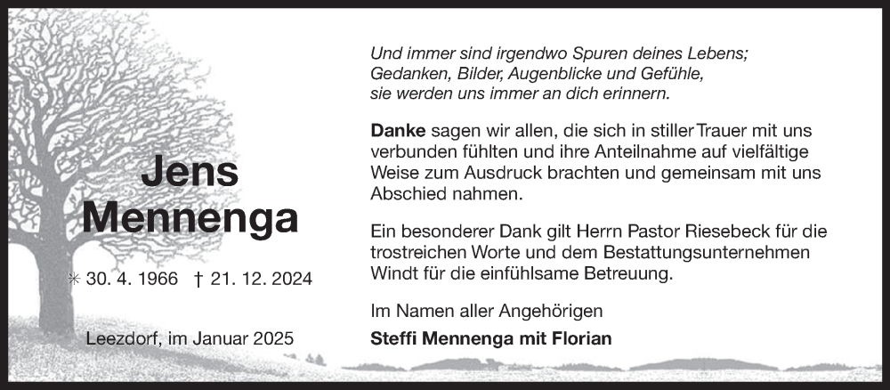 Hier finden Sie alle Traueranzeigen aus der Zeitung, die bisher für Jens Mennenga erschienen sind. Weitere Traueranzeigen, die in der Zeitung erscheinen, werden hier ebenfalls aufgelistet