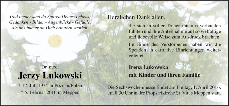 Hier finden Sie alle Traueranzeigen aus der Zeitung, die bisher für Jerzy Lukowski erschienen sind. Weitere Traueranzeigen, die in der Zeitung erscheinen, werden hier ebenfalls aufgelistet
