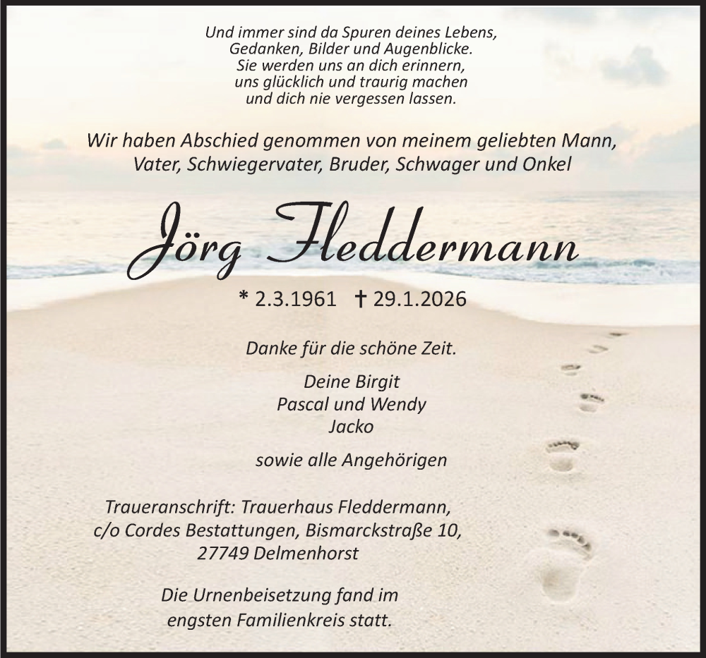 Hier finden Sie alle Traueranzeigen aus der Zeitung, die bisher für Jörg Fleddermann erschienen sind. Weitere Traueranzeigen, die in der Zeitung erscheinen, werden hier ebenfalls aufgelistet