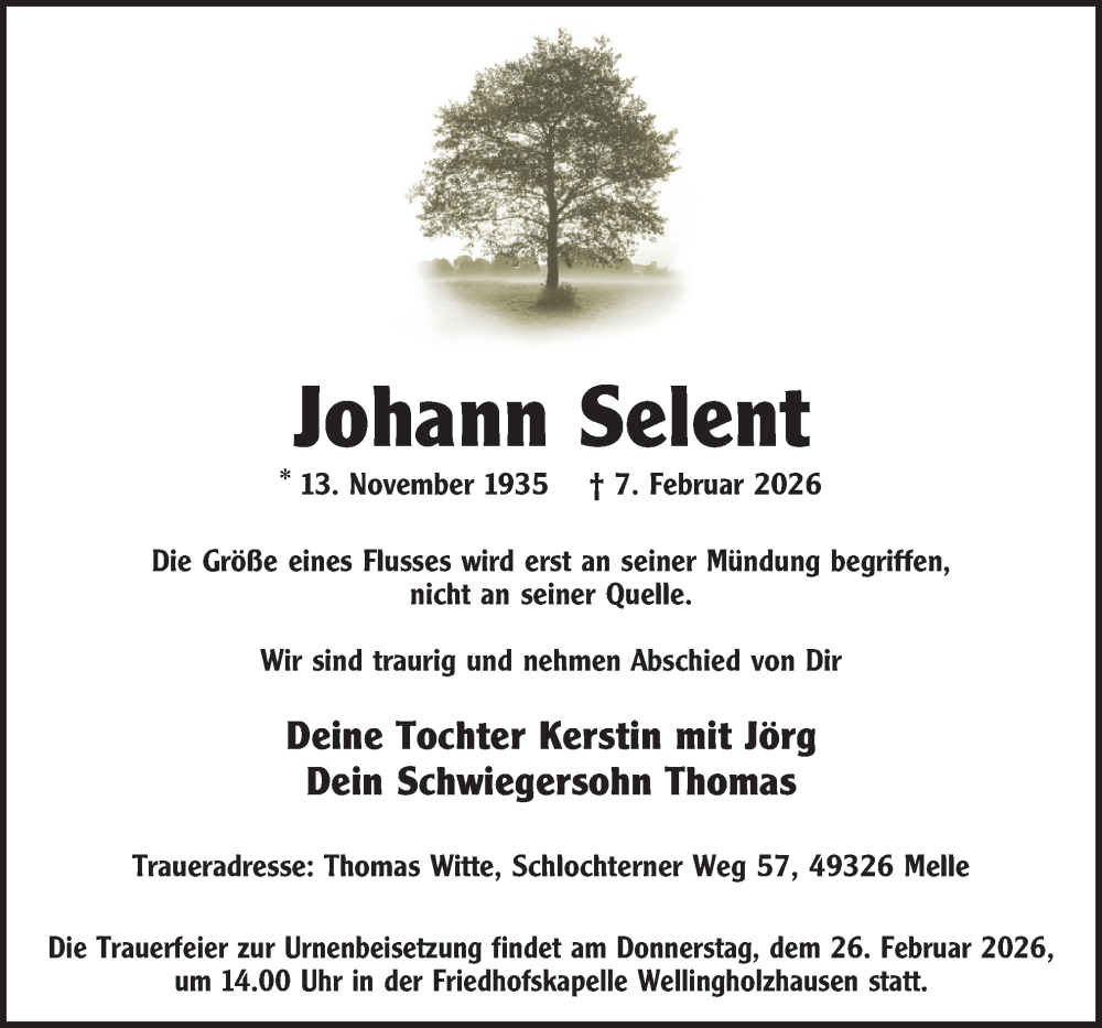 Hier finden Sie alle Traueranzeigen aus der Zeitung, die bisher für Johann Selent erschienen sind. Weitere Traueranzeigen, die in der Zeitung erscheinen, werden hier ebenfalls aufgelistet