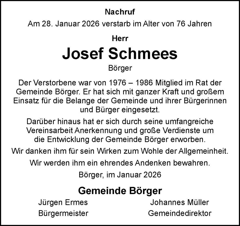 Hier finden Sie alle Traueranzeigen aus der Zeitung, die bisher für Josef Schmees erschienen sind. Weitere Traueranzeigen, die in der Zeitung erscheinen, werden hier ebenfalls aufgelistet