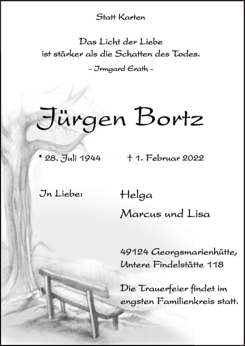 Hier finden Sie alle Traueranzeigen aus der Zeitung, die bisher für Jürgen Bortz erschienen sind. Weitere Traueranzeigen, die in der Zeitung erscheinen, werden hier ebenfalls aufgelistet