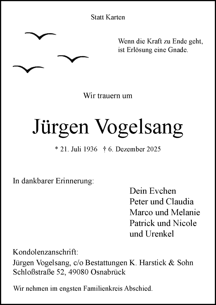 Hier finden Sie alle Traueranzeigen aus der Zeitung, die bisher für Jürgen Vogelsang erschienen sind. Weitere Traueranzeigen, die in der Zeitung erscheinen, werden hier ebenfalls aufgelistet