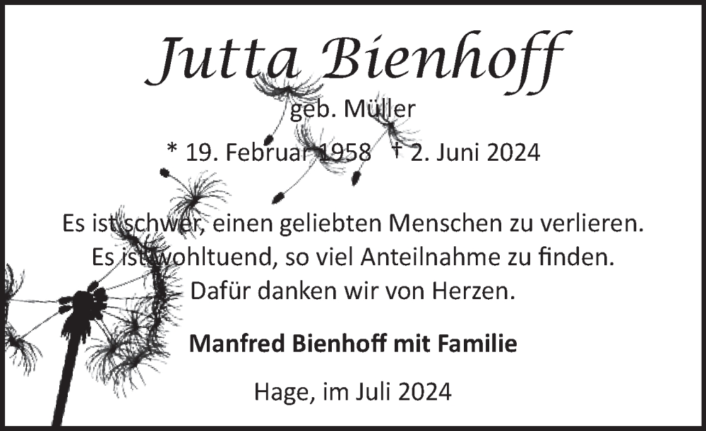 Hier finden Sie alle Traueranzeigen aus der Zeitung, die bisher für Jutta Bienhoff erschienen sind. Weitere Traueranzeigen, die in der Zeitung erscheinen, werden hier ebenfalls aufgelistet