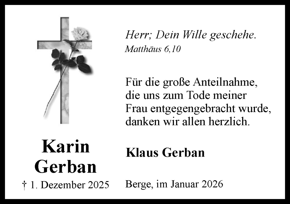 Hier finden Sie alle Traueranzeigen aus der Zeitung, die bisher für Karin Gerban erschienen sind. Weitere Traueranzeigen, die in der Zeitung erscheinen, werden hier ebenfalls aufgelistet