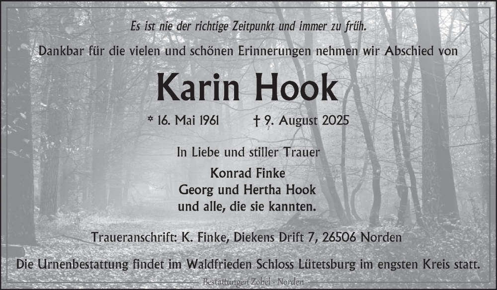 Hier finden Sie alle Traueranzeigen aus der Zeitung, die bisher für Karin Hook erschienen sind. Weitere Traueranzeigen, die in der Zeitung erscheinen, werden hier ebenfalls aufgelistet