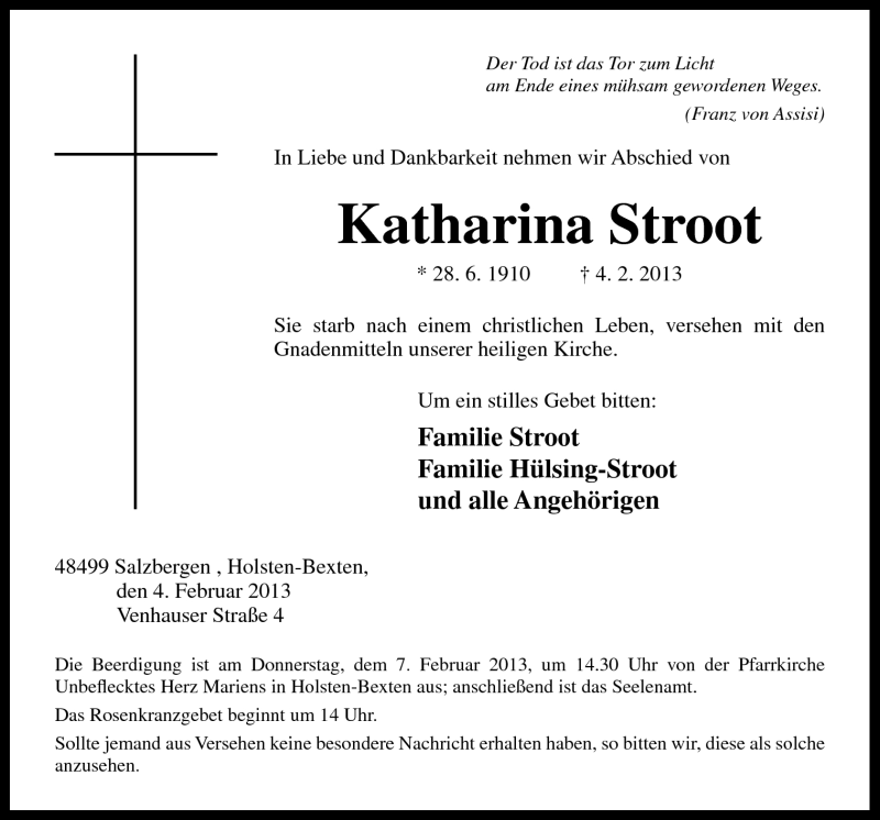 Hier finden Sie alle Traueranzeigen aus der Zeitung, die bisher für Katharina Stroot erschienen sind. Weitere Traueranzeigen, die in der Zeitung erscheinen, werden hier ebenfalls aufgelistet